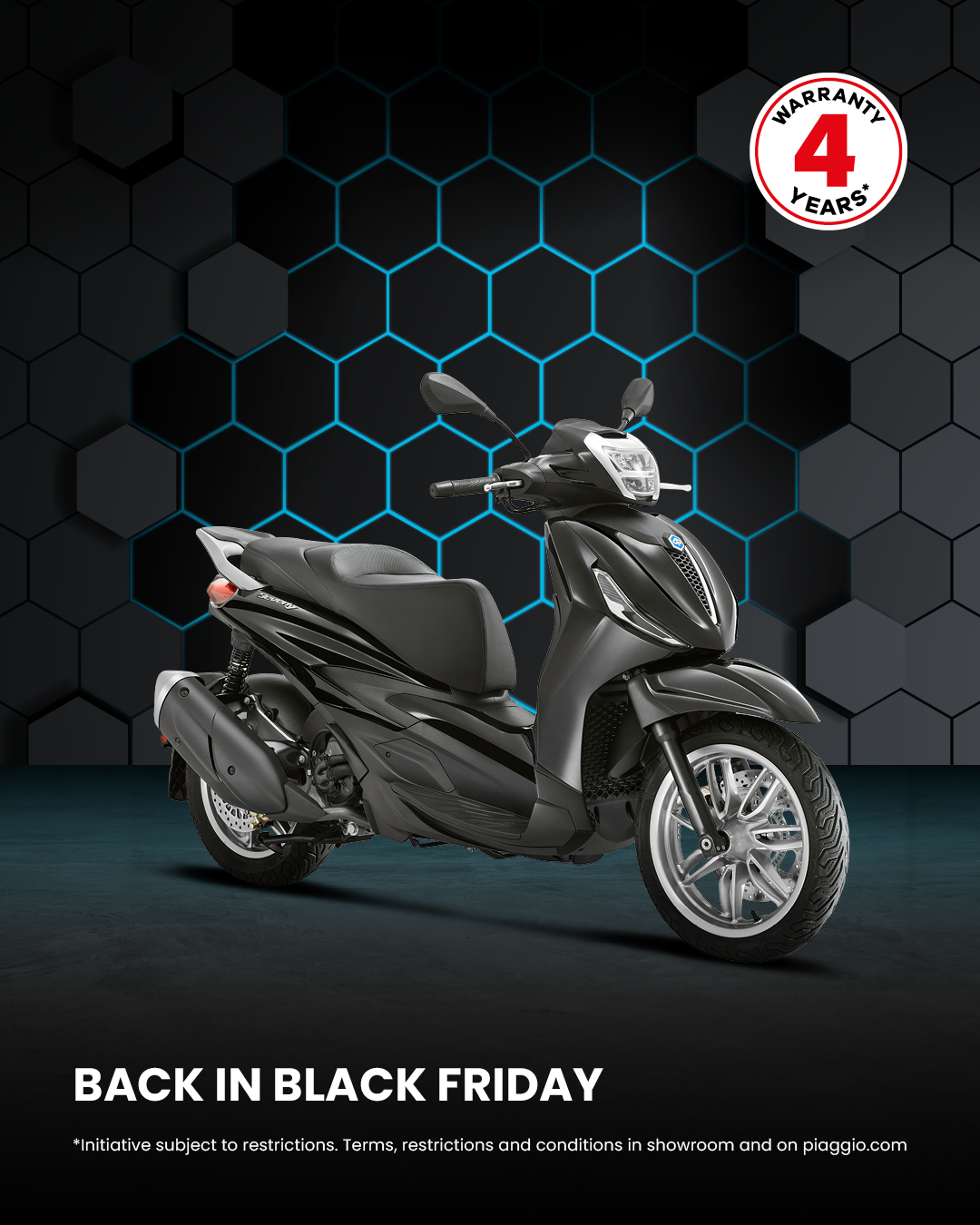 VIER JAHRE FÜR DICH: Hol dir bis zu 4 Jahre Garantie, wenn du eine Vespa bei einem offiziellen Vertragshändler kaufst.