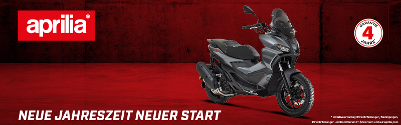 *Nach Ablauf der Standard-Handelsgarantie (die 2 Jahre ab Kauf oder Zulassung des Fahrzeugs gilt) gibt’s eine Garantie von 12 Monaten + weitere 12 Monate (bis zu maximal 24 Monaten), vorausgesetzt, dass die normalen Wartungsarbeiten, die in der Gebrauchs- und Wartungsanleitung stehen, von den Servicezentren des offiziellen Kundendienstnetzes ab dem Kaufdatum des Fahrzeugs gemacht werden. Die erweiterte kommerzielle Garantie wird für Aprilia Roller bis 50 cm³ mit Euro 5 Zulassung und über 50 cm³ mit Euro 5+ Zulassung gewährt, die ab dem 19. Mai 2025 im offiziellen Netzwerk gekauft wurden, ohne zusätzliche Kosten für den Kunden. Sie garantiert die kostenlose Reparatur oder den kostenlosen Austausch wichtiger Komponenten. Weitere Infos, Ausschlüsse und allgemeine Bedingungen zur erweiterten kommerziellen Garantie und zur Standard-Garantie bekommst du beim offiziellen Händlernetz oder auf der Seite „4 Jahre Garantie“.